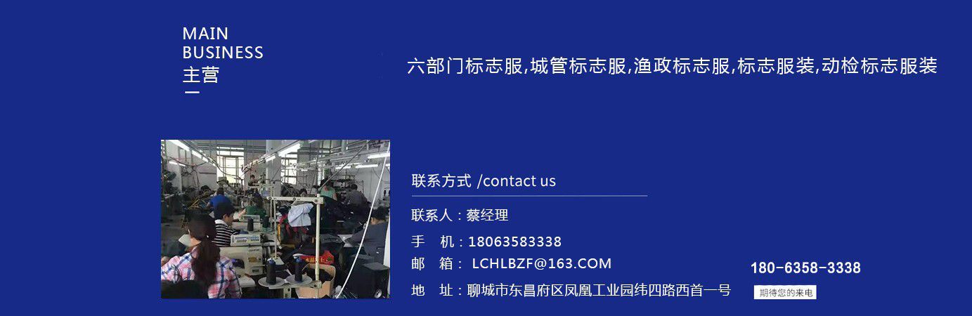 聊城市領(lǐng)祥服裝有限公司主主要生產(chǎn)六部門標志服,城管標志服,漁政標志服,標志服裝,動檢標志服裝,標志服裝廠等產(chǎn)品,款式新穎,做工精細,可根據(jù)用戶要求批量定做。公司成立以來,已為各行業(yè)數(shù)千家企業(yè)、集團承制了職業(yè)制服。 多年來,我公司本著“質(zhì)優(yōu)高效,守約重譽”的經(jīng)營理念給廣大新老客戶提供質(zhì)優(yōu)價廉的產(chǎn)品和售后服務。憑借良好的信譽,雄厚的實力,優(yōu)質(zhì)的產(chǎn)品,低廉的價格愿與新老客戶真誠協(xié)作,業(yè)務遍布全國各地,是山東優(yōu)秀的標志服裝廠,歡迎新老客戶參觀考察! 公司生產(chǎn)的職業(yè)服飾均以標準的質(zhì)量,頂尖精湛的技術(shù)為基礎(chǔ),以客戶的滿意為根本,全程采用電腦輔助設計制服,成衣、服飾配件(領(lǐng)帶,領(lǐng)結(jié),紐扣,帽子,企業(yè)標志等)均可定織定染,普遍采用進口或合資優(yōu)質(zhì)輔料,尺碼按身高和體型劃分或量體定制。每一道工序,每一個生產(chǎn)環(huán)節(jié)精雕細琢,充分體現(xiàn)了以質(zhì)量求生存,以信譽求發(fā)展的理念。并以準確的市場定位,先進的營銷理念,贏得廣大客戶的信賴支持! 公司宗旨:“團結(jié)、服務、創(chuàng)新”。公司方針:“專業(yè)創(chuàng)造輝煌,質(zhì)量保證未來,用心換得人心”。熱誠歡迎業(yè)界同仁來公司洽談!...